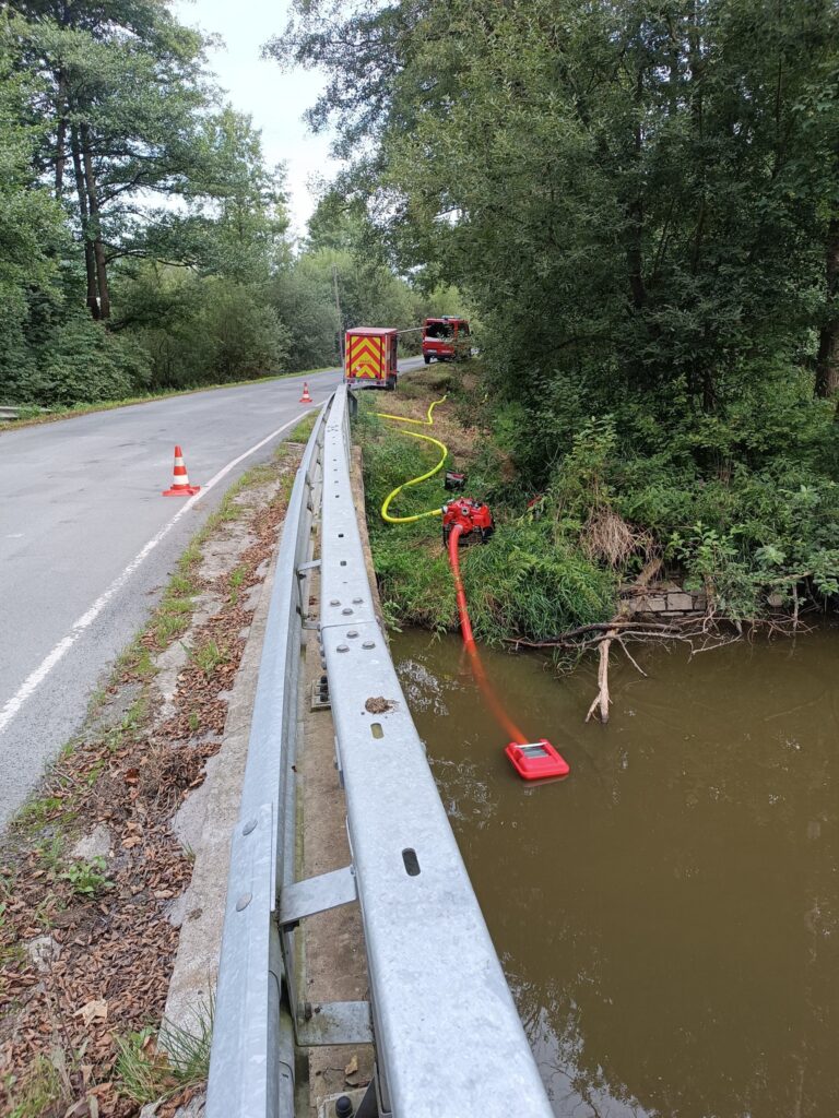 V sobotu 9. srpna jsme v rámci výcviku jednotky vypomohli nepomuckému rybářskému svazu s načerpáním vody do chovného rybníka u Žinkov.
